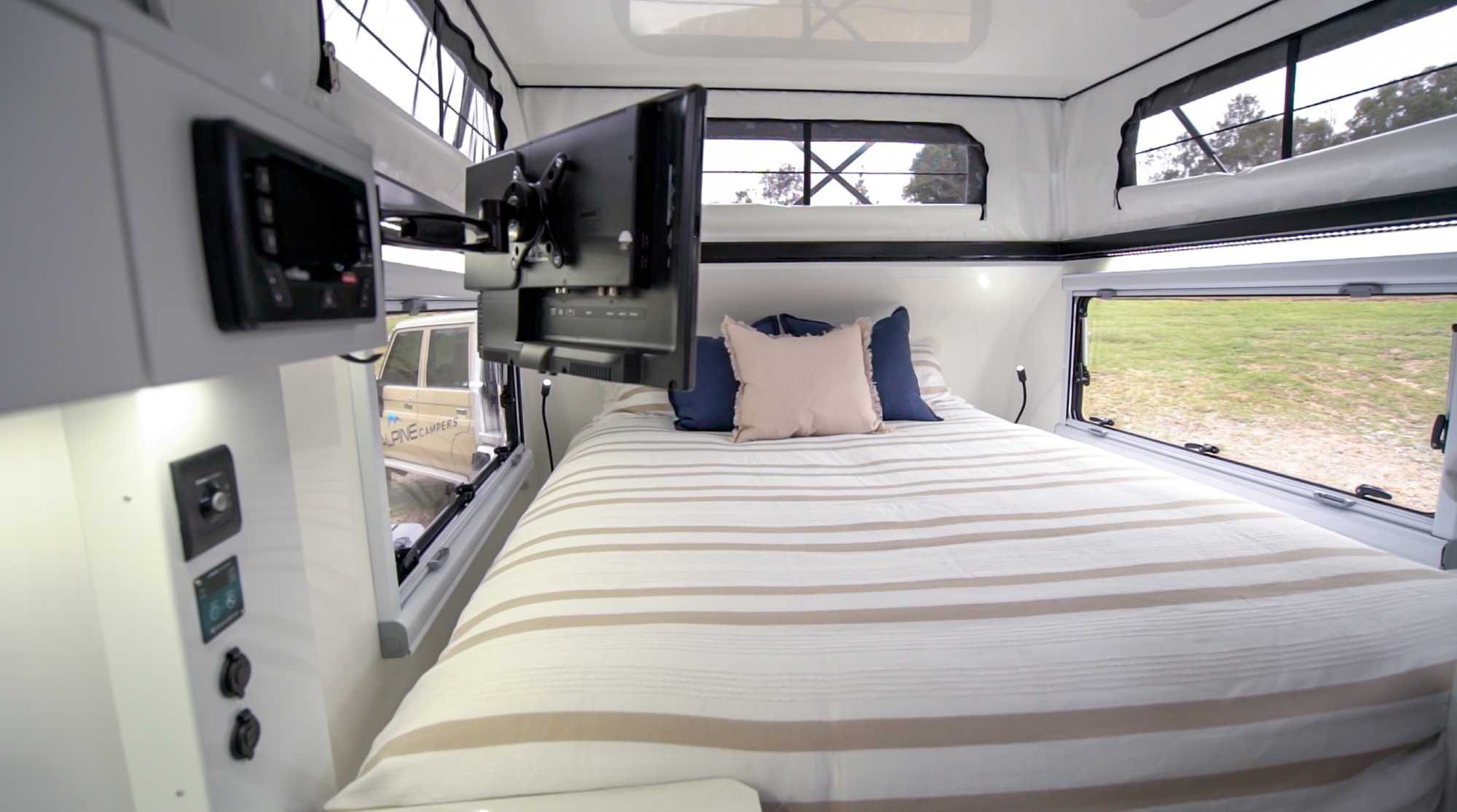 The ALP-16 is the ultimate Australian-made luxury hybrid camper. From the ground up, the ALP-16 has been engineered and manufactured to exceed the harsh conditions of the Australian outback. The go-anywhere motto is supported by a tough chassis, made from Australian steel, and the unquestionable comfort of Cruisemaster airbag suspension and DO35 off-road coupling.
