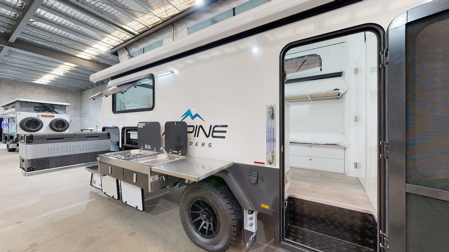 Designed for extended stays, the ALP-16 boasts ample water storage and a cutting-edge Enerdrive lithium power system, ensuring all your lighting and power needs are met efficiently. Lightweight yet durable, it’s effortlessly towable, making it an ideal companion for Australian adventures.